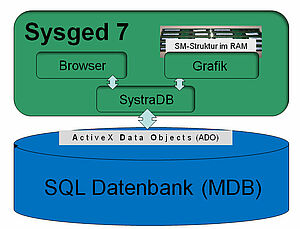 Sysged hat eine Multifenstertechnik für beliebig viele Browser und Grafikfenster als Sichten auf eine redundanzfreie Datenstruktur.