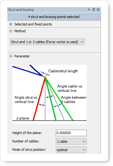Easy erlaubt auch eine gemischte Formfindung: Um die Positionen von Steifigkeitselementen in einer Gleichgewichtsstruktur zu optimieren, werden diese Elemente mit dem Formfindungsprozess kombiniert. Unter Verwendung der Reaktionskräfte der anfänglich fixierten Punkte erzeugt EasyForm automatisch verschiedene Typen einer Primärstruktur.