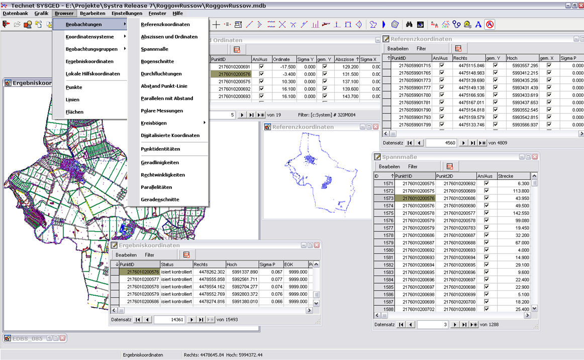 Sysged hat eine Multifenstertechnik für beliebig viele Browser und Grafikfenster als Sichten auf eine redundanzfreie Datenstruktur.
